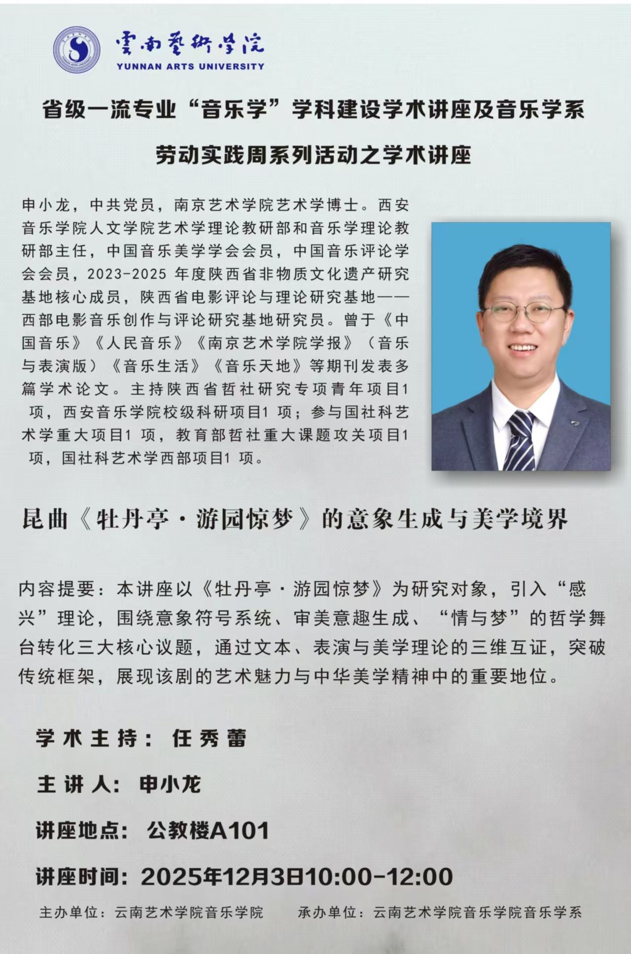 省级一流专业“音乐学”团队建设学术讲座及音乐学系劳动实践周系列活动之学术讲座——昆曲《牡丹亭·游园惊梦》的意象生成与美学境界