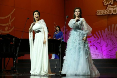 此次音乐会不仅涵盖独唱、重唱、联唱等多种演唱形式,还呈现了由戏曲和流行歌曲结合的创新——《卷珠帘·梨花颂》。《梨花颂》是京剧《大唐贵妃》主题曲,《卷珠帘》是带有中国古风的流行歌曲,乐曲由段志鹏用流行唱法和戏曲唱法的赵艳共同演绎,不仅将两首皆具有中国五声音阶特色的歌曲无痕链接,更是将流行和戏曲两种不同唱法结合、碰撞,使观众耳目一新。