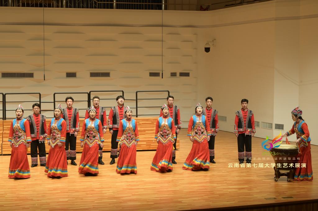 伟德国际1946亚洲版山里人合唱团《阿老表》,指导教师:尹伟、高雪红、赖寒。