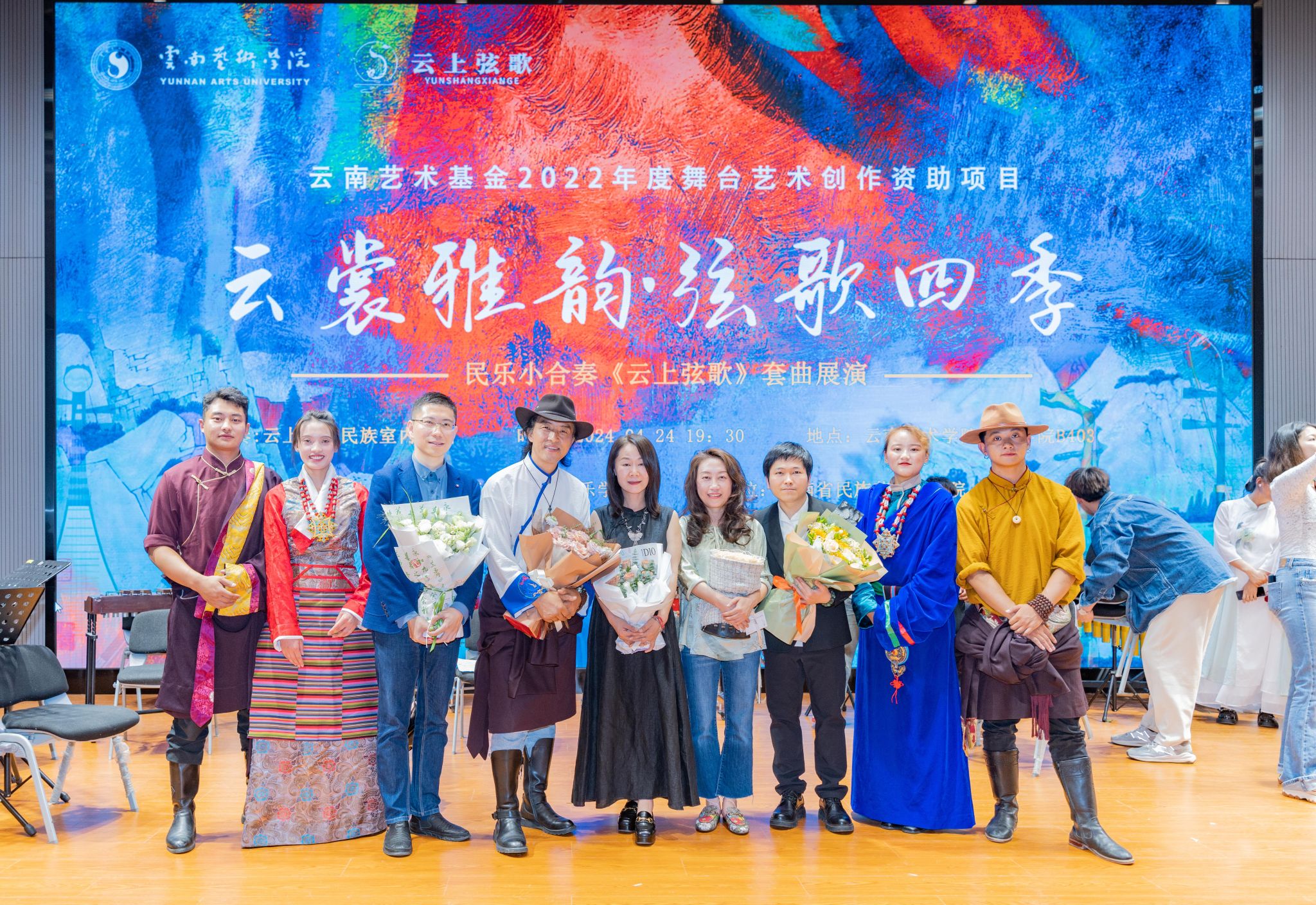 2024年4月24日晚,2022年度云南首届艺术基金资助项目“云雅韵·弦歌四季-民乐小合奏《云上弦歌》套曲展演”音乐会在伟德国际victor1946B403音乐厅成功首演。