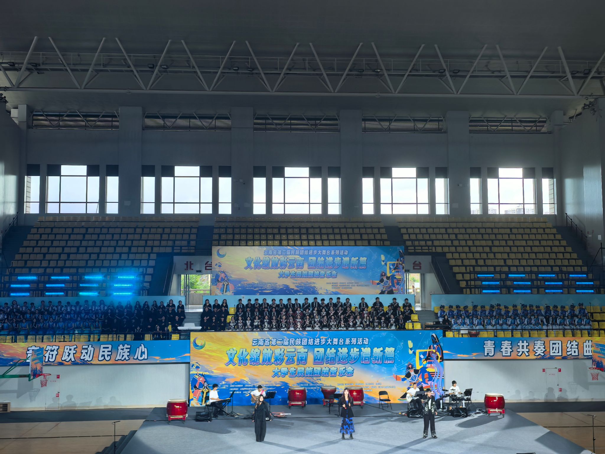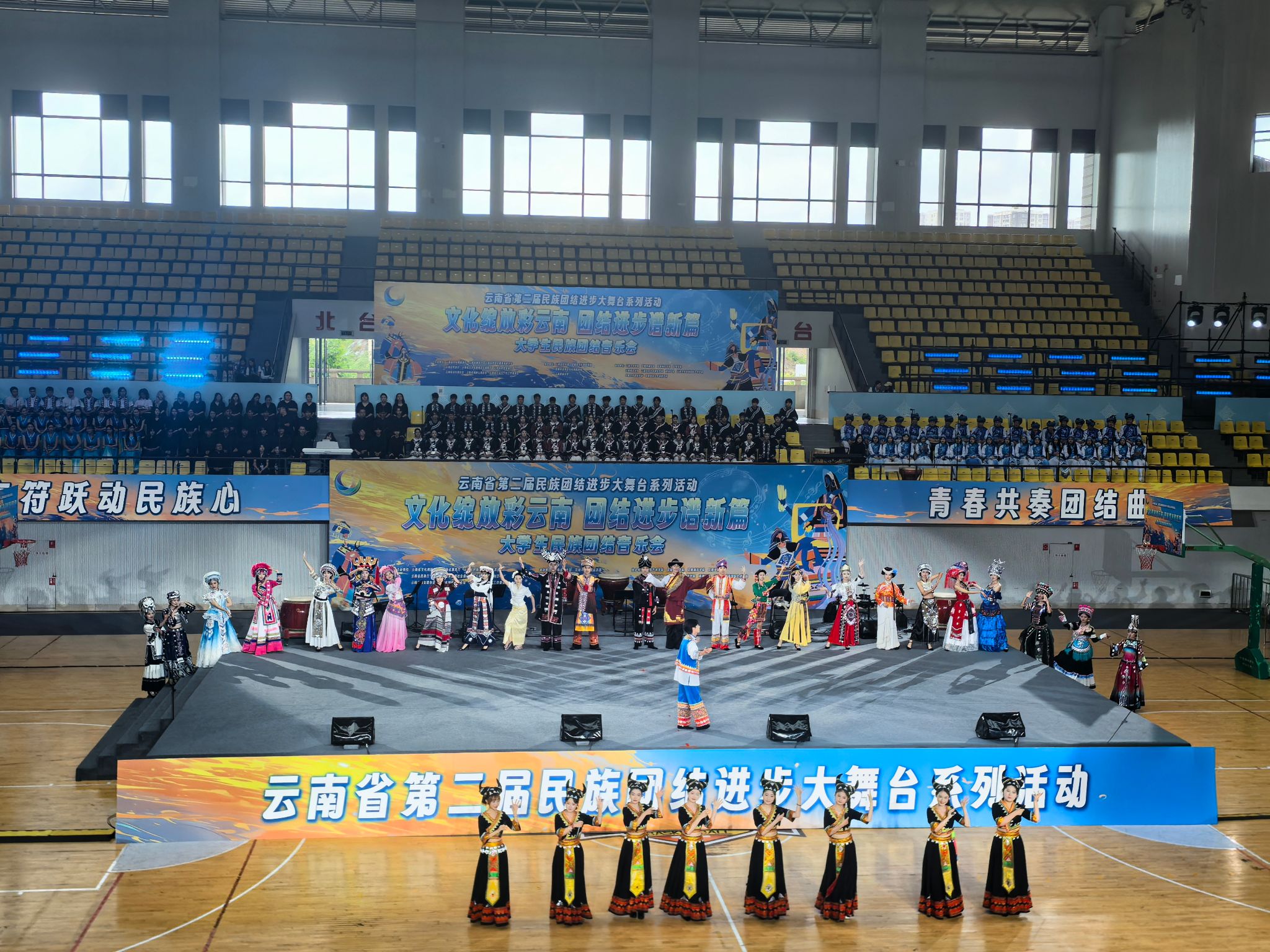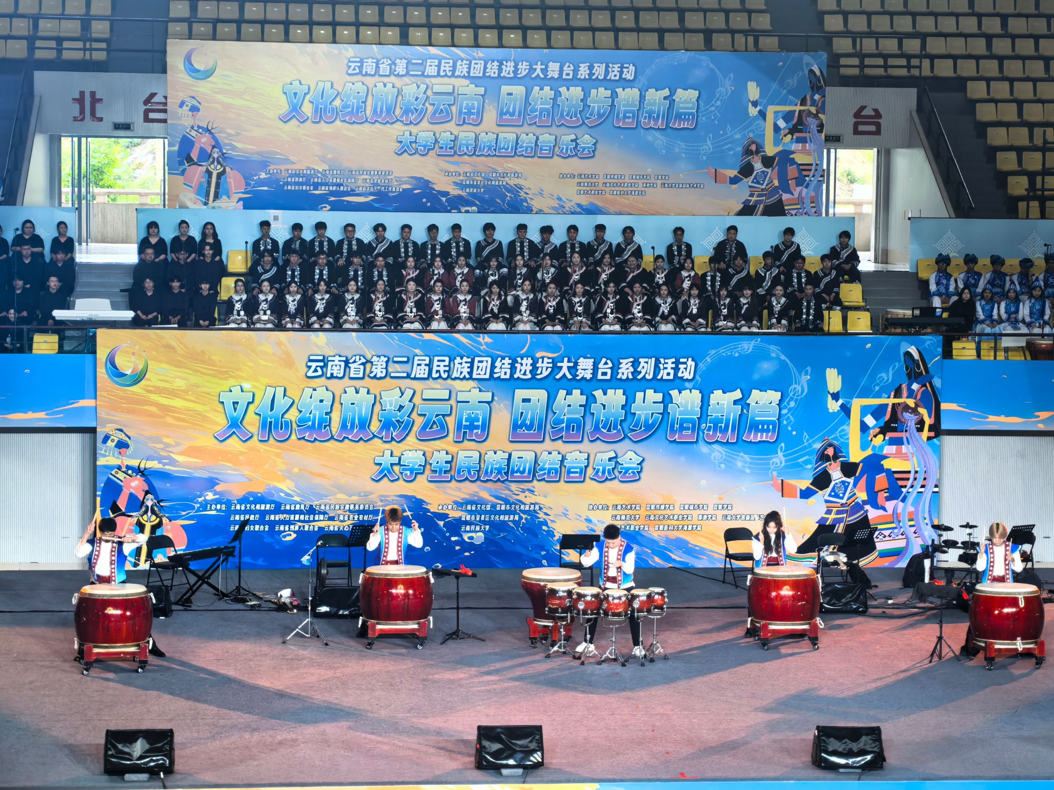 2025年6月15日,由云南省文化和旅游厅、省教育厅等多家单位联合主办的云南省第二届民族团结进步大舞台系列活动——“文化绽放彩云南 团结进步谱新篇”老员工民族团结音乐会在云南民族大学精彩上演,来自全省11所高校的300余名师生同台献艺。伟德国际victor1946选送《滇鼓-乐之魂》《排角姑娘》《山寨猎歌》《怒放的生命》4个节目参与演出。党委委员、副经理郎启训出席音乐会,公司师生代表到现场观看音乐会。