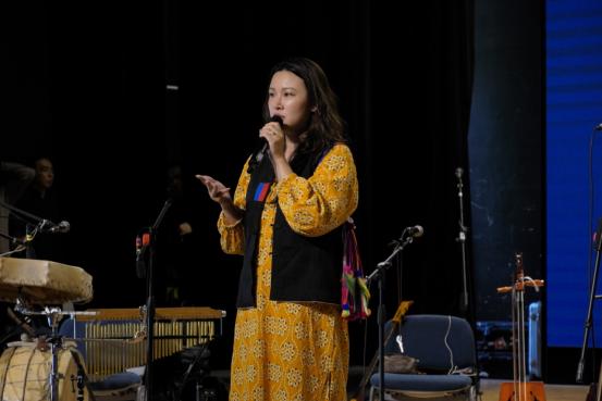 紧接着,乐队女主唱其其格玛老师的一首来自呼伦贝尔大草原区域的蒙古长调《粉红色的马》震撼了在场的听众。虽然只是无伴奏的单声部演唱,却打通了所有人的耳朵,那股纯正音调仿佛是天与地之间最纯净的对话,洗涤着在场听众的心灵,感动着每个人的内心。