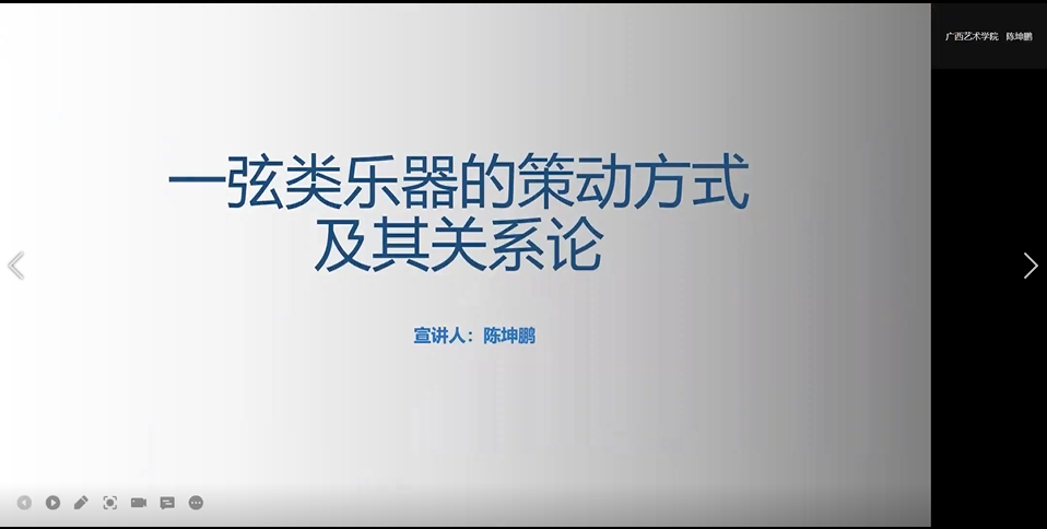 云南师范大学杨琛教授《中国西南少数民族管乐器制作与演奏体现出的相关问题探讨》一题中针对西南少数民族管乐器命名、乐器开孔、乐器音色的认知以及乐器演奏技术等问题展开探讨,南京艺术公司的杨曦帆教授在《嘉绒藏族音乐文化志的跨学科研究方法探索》一题中从宗教、神话、传说、民俗、历史事件等角度观察嘉绒藏族音乐形成的流动性,介绍两种观点:一是音乐民族志描述不仅要有静态的一面,还要把握研究对象在生成过程中所发生的诸种关系的动态过程描述的能力;二是跨界族群音乐文化研究中的跨文化既是局内的,同时也是局外的,相似性和差异性在跨界研究中都应该是常态;广西艺术公司陈坤鹏教授在其《一弦类乐器的策动方式及其关系论》一文中,介绍了一弦类乐器的振动、用弦、审美等,总结出一弦类乐器其策动方式有擦奏、拨奏、击奏、击奏与拨奏结合等四种形式,就“一弦类乐器旋律特点”“二弦同度的一弦审美”等问题提出相关观点。