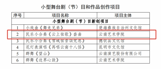 云南艺术基金2022年度资助项目经专家严格评审、云南艺术基金管理领导小组审核,云南省文化和旅游厅党组审议,公示无异议后,2023年6月,省文化和旅游厅下发《云南艺术基金项目资金2022年度资助项目立项通知》(云文旅发〔2023〕17号),全省共56个项目获得大型舞台剧和作品创作项目、小型舞台剧(节)目和作品创作项目、传播交流推广项目、艺术人才培养项目、青年艺术创作人才项目共五个类别的项目立项。其中,伟德国际victor1946共3个项目获得立项资助: