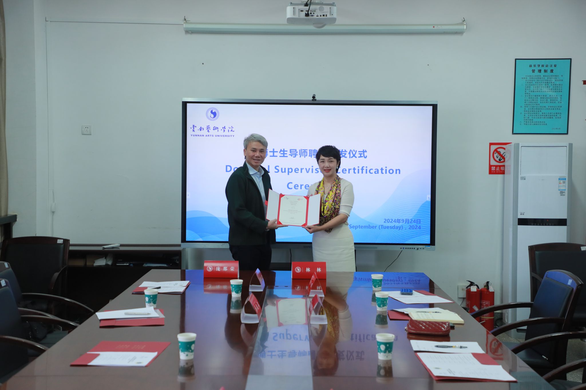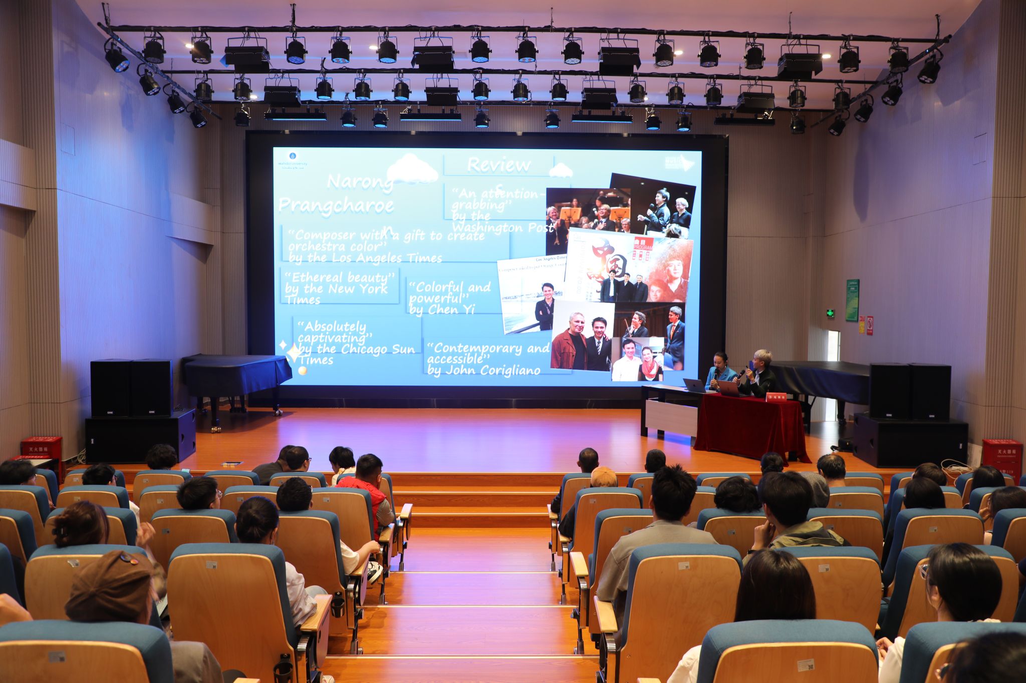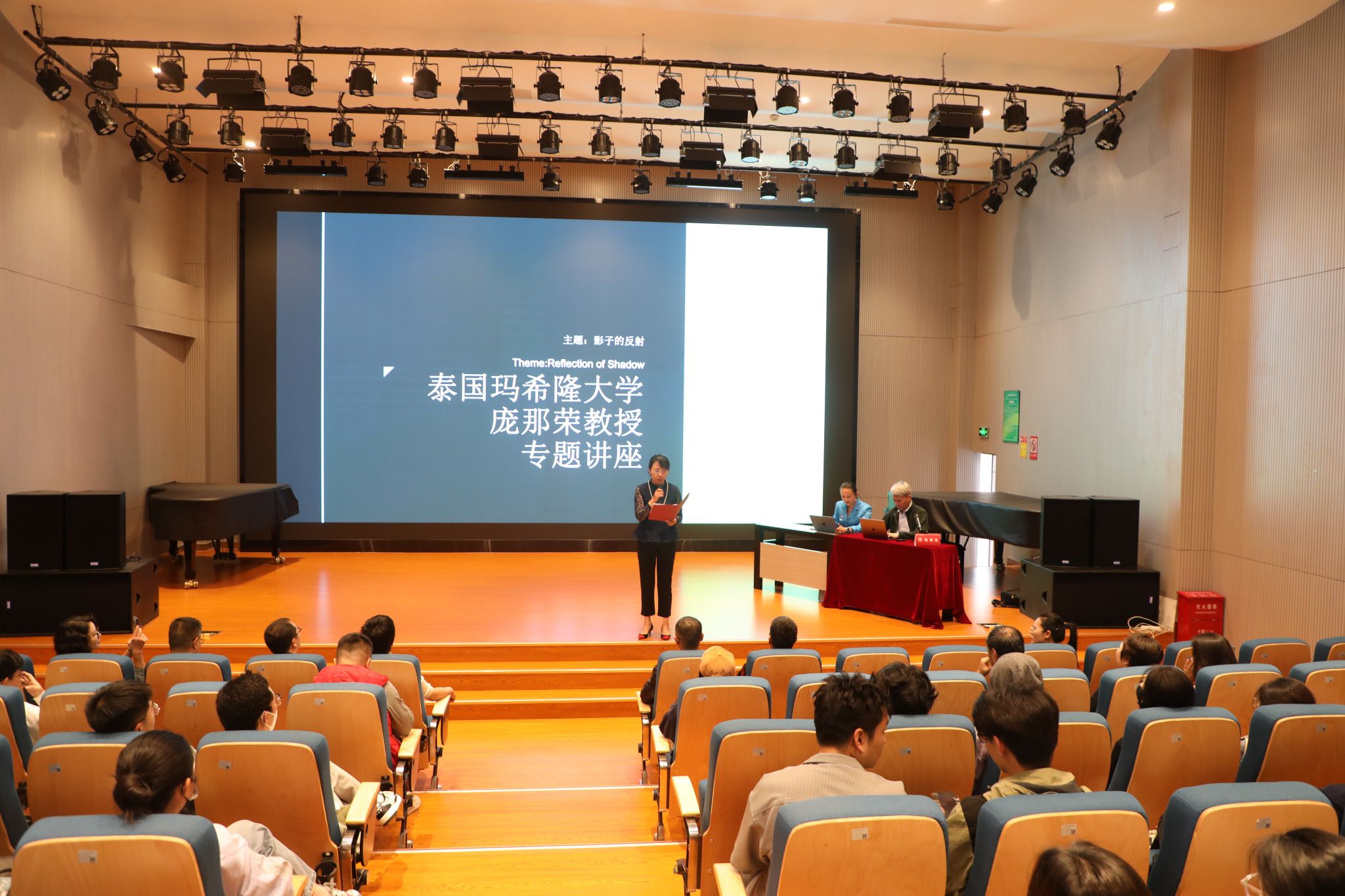 签约仪式后,泰国玛希隆大学庞那荣教授专题讲座在伟德国际victor1946B403举行,伟德国际1946亚洲版公司党委副书记、经理林林,党委委员、副经理侯静宜,以及作曲系全体师生参加此次讲座。在讲座上,庞那荣教授和大家分享了自己创作的步骤;从可视化图表、音高、作品结构、配器等多方面介绍并展示了他的作品《reflection of shadow》(暗影映像)。庞那荣教授在这部作品中运用了多种现代创作技法,对于作曲系师生的实践创作具有较高的参考价值。在讲座最后,作曲系师生与庞那荣教授展开了热烈讨论。