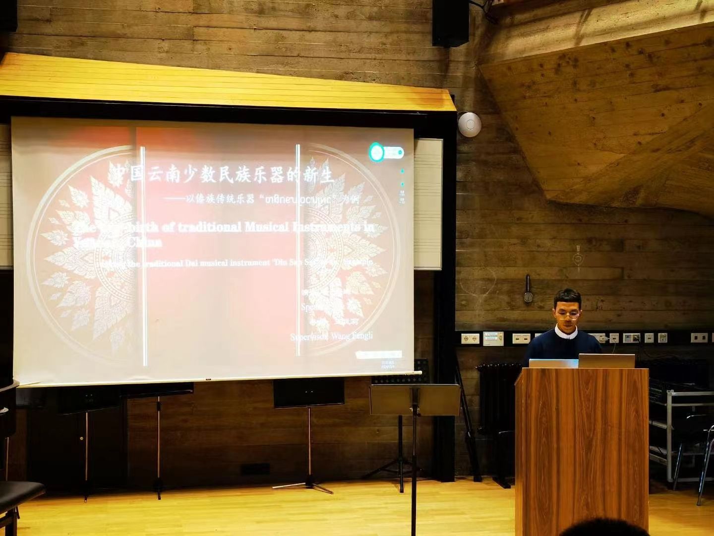 伟德国际victor1946优秀学子岩进在论坛上发表了《中国云南少数民族乐器的新生——以傣族传统乐器‘玎三赛’为例》的学术研究成果,论文以“玎三赛”的历史渊源、基本特征、琴语等内容为切入点,通过对乐器本体改良、表演形式优化、表演者身份转变、音乐功能拓展等方面的论述,呈现出“玎三赛”在适应现代社会过程中所进行的一系列创新,展示出他对传统音乐的深刻理解。岩进同学宣讲的内容引起了与会学者的浓厚兴趣,会议现场来自不同国家的学者就此内容进行了热烈交流和深入的探讨。