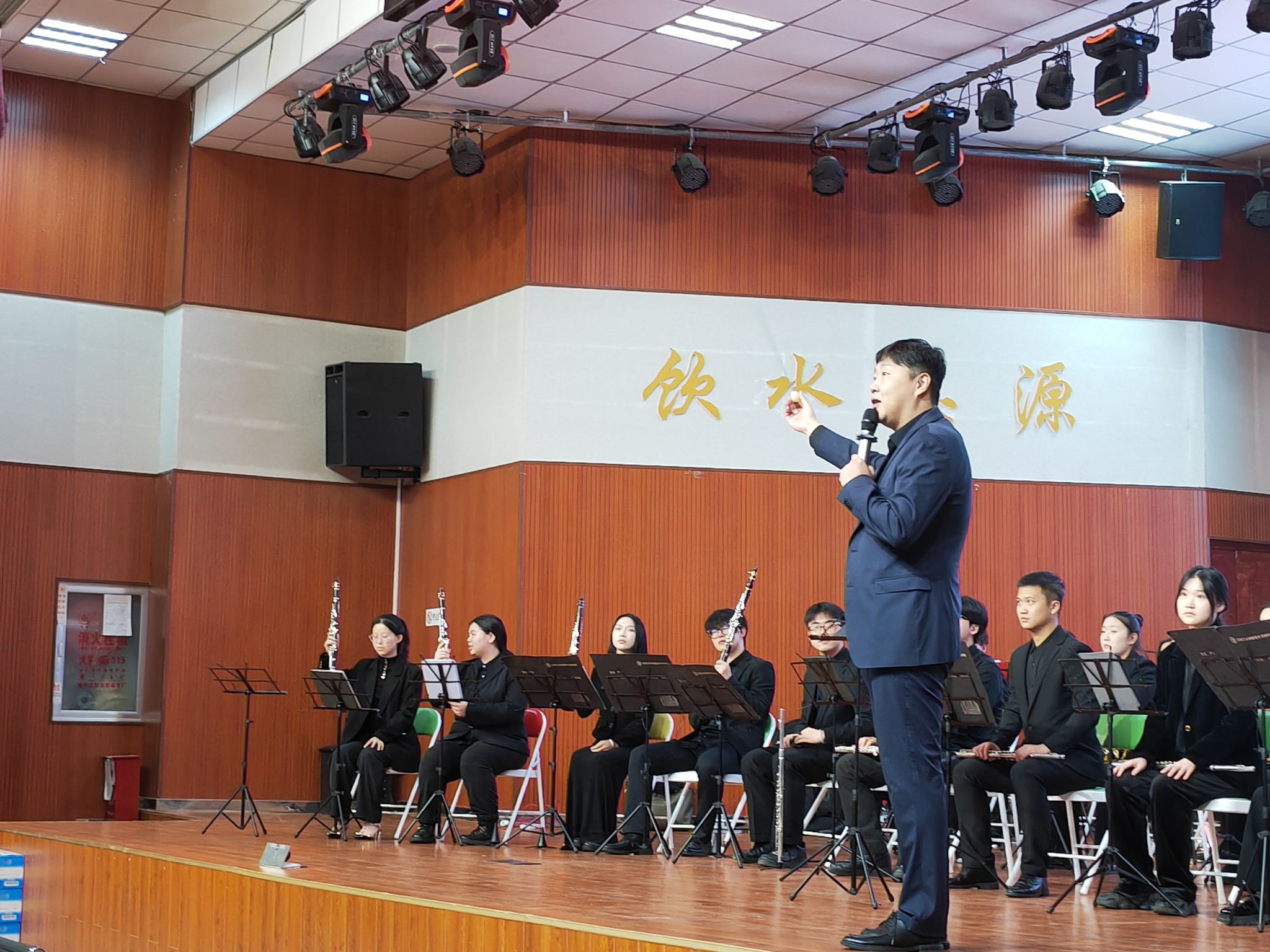 展演活动秉持弘扬中华美育精神的宗旨,以美为媒介,深入践行以美育人、以美化人、以美培元的教育理念。一曲激昂壮阔的《钢铁洪流进行曲》如同一股磅礴的力量,展现出强大的气势与豪迈情怀。这部作品在2019年10月1日中华人民共和国成立70周年阅兵式上演奏,以其气势恢宏的音乐风格,展现了国家的威严和力量。同学们听完后热血沸腾,激发了师生们的爱国热情。《当那一天来临》是一首创作于2005年的军旅歌曲,收录在中国人民解放军总政治部2006年发行的专辑《战斗精神歌曲系列》中。歌曲通过描绘军人在战斗中的英勇无畏和坚定信念,虽是写于没有硝烟战火的和平时期军旅歌曲,但提醒着我们时刻牢记历史的教训,敲响了居安思危的警钟,通过旋律,唤起同学们国防安全和责任担当的深刻思考。《走向复兴》是一首为中华人民共和国成立六十周年华诞献礼的歌曲,并且在国庆六十周年大阅兵中,该歌曲也成为联合军乐团演奏的压轴曲目。音乐以其振奋人心的旋律,传递出坚定的民族复兴信念,激发同学们的爱国情怀和民族自豪感,听完后同学们的眼神变得更加坚定,激励着在场每一个人为梦想奋勇前行。