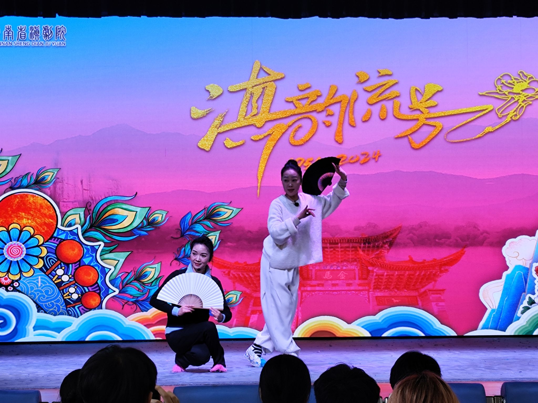 随后,师生们来到滇剧院的多功能厅,云南省滇剧院演出一团团长、国家一级演员、梅花奖获得者陈亚萍老师为师生们现场进行剧目导赏。滇剧院国家一级演员赵春芬、陈楠、李伟、王俊松以及国家二级演员刘山山、优秀青年演员胡彪,联袂为员工们表演了滇剧《白蛇传·船舟会》和《白蛇传·盗仙草》片段。他们娴熟的动作、优美的唱腔,举手投足间对人物表演的分寸拿捏,充分体现出专业院团演员几十年勤学苦练的深厚功底,精彩的表演赢得了师生们的阵阵掌声和喝彩声。