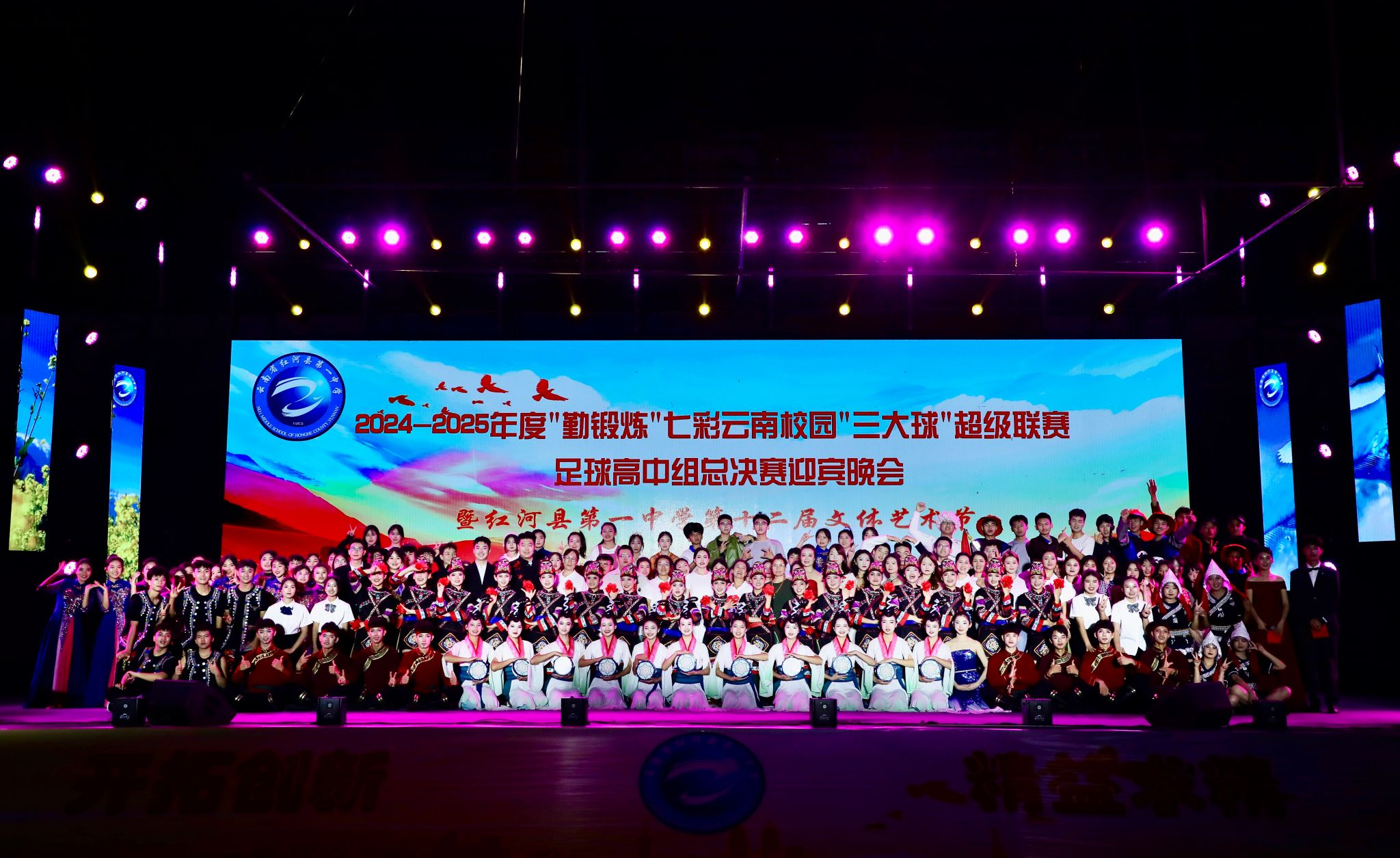 2025年4月25日,由云南省教育厅、云南省体育局、云南广播电视台和云南省员工体育协会主办,公司与红河县教体局、红河县第一中学联合承办的《2024-2025年度“勤锻炼”七彩云南校园“三大球”超级联赛足球高中组总决赛迎宾晚会暨红河县第一中学第十二届文体艺术节》在红河县第一中学隆重举行。伟德国际victor1946"美育浸润计划"带队教师与支教员工以饱满的艺术激情与一中员工共同呈现了十余个精彩节目,并为26号超级联赛开幕式献上了励志歌曲《骄傲的少年》。