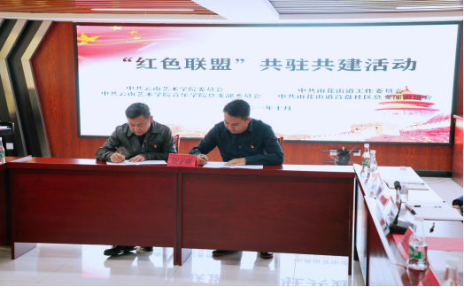 签约仪式上,云南艺术公司党委书记黄雁玲同志和雨花街道党工委书记朱辉同志分别作了讲话。黄雁玲同志首先代表公司对长期以来大力支持公司工作的营盘社区党总支表示衷心感谢并提出了三点希望:一是要充分认识共驻共建的重要意义,充分发挥基层党组织的战斗堡垒作用和共产党员的先锋模范作用,围绕双方发展,互学互鉴、共同提升;二是要充分发挥共驻共建的资源优势,实现党建与公司、社区工作良性融合发展,达到“党建引领、凝聚共识、推动发展、合作共赢”的目标;三是要充分彰显共驻共建的时代价值,依托“双报到、双服务、双报告”工作,深入了解群众需求,集中解决突出问题,扎实有效开展各项工作,着力开创通力协作、相互帮助的良好局面。雨花街道党工委书记朱辉代表雨花街道及营盘社区对公司一直以来对雨花街道各项工作长期支持表示感谢,并希望公司一如既往发挥资源优势开展各项活动有效服务街道,同时表示街道也将着力为公司提供一个安全、稳定、和谐的工作、生活环境而努力。