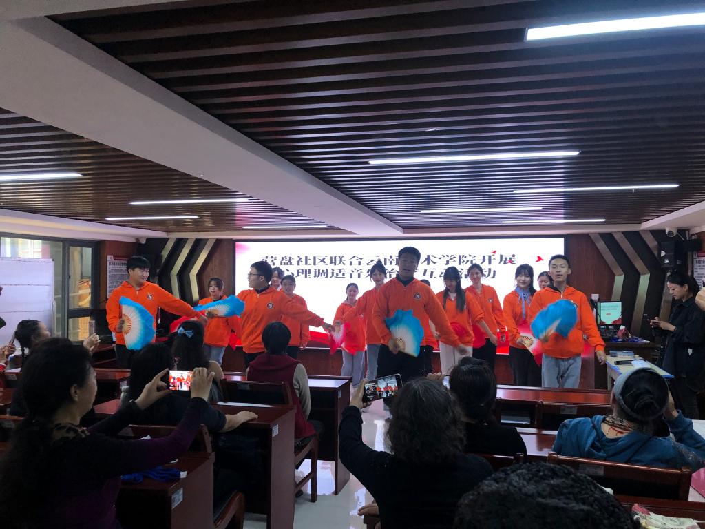 根据活动前期调研,了解到社区中老年居民较多。为帮助社区中老年居民舒缓心情、愉悦身心、增强体质,公司教工第一党支部结合专业学科特色专门为社区中老年居民设计了音乐治疗活动。活动中公司师生担任“治疗师”角色,营盘社区中老年居民为“来访者”。活动以伟德国际victor1946团学干部演唱、演奏的歌曲《风吹麦浪》开场,告知“来访者”本次活动即将开始,建立“治疗师”与“来访者”之间的关系。