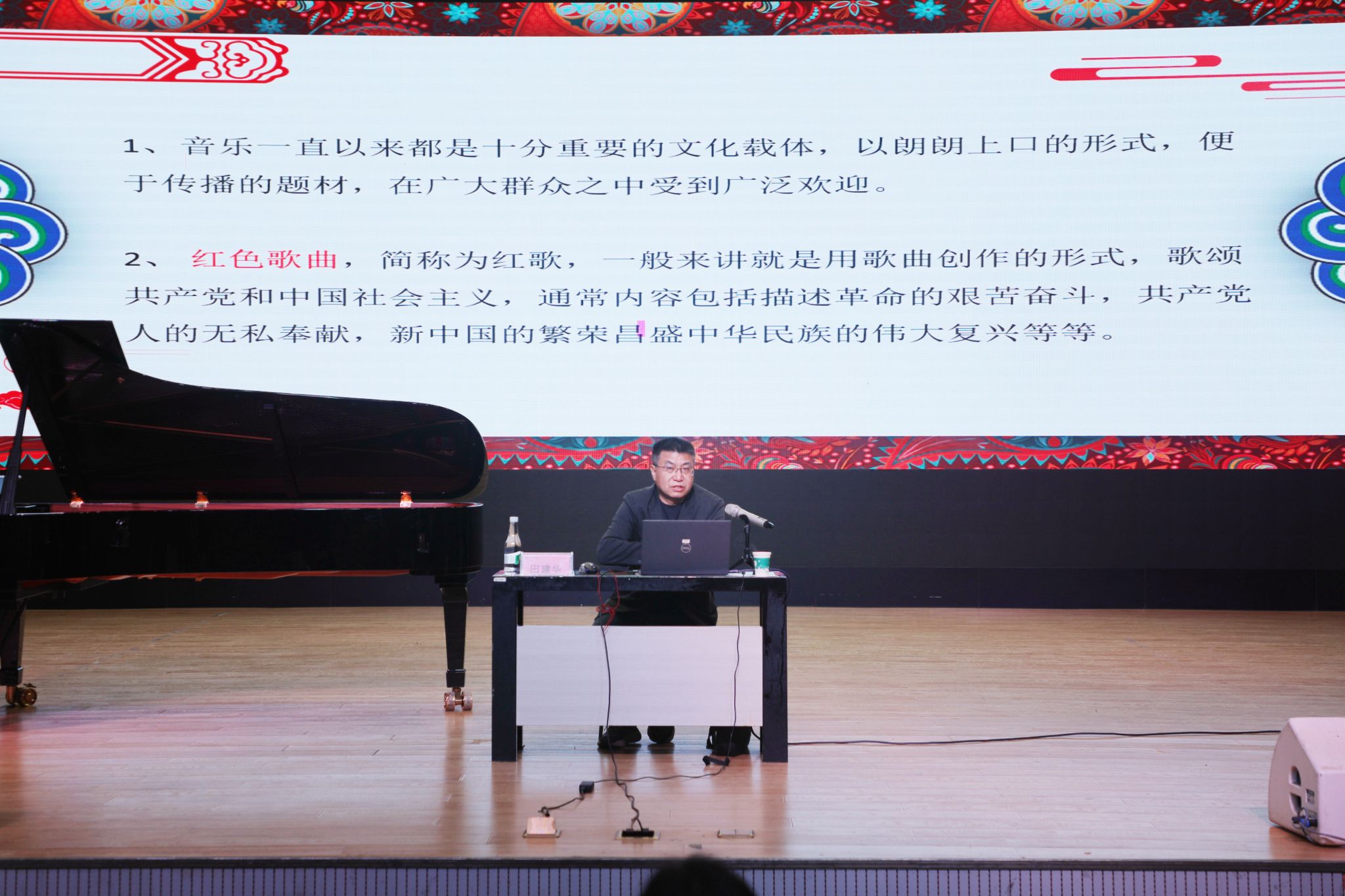 田建华老师以“音乐作品中的党史”为题,为在座学员展示了音乐专业领域的党史知识,通过将音乐艺术与党史课相结合,带领大家重温中国共产党百年自强不息的奋斗历程。讲座结尾由公司青年党员教师高雪红伴奏,员工第二党支部书记张双双、教工第三党支部委员张菲菲深情演绎《我和我的祖国》,带动全场齐声同唱。党史故事在钢琴声中入耳入心,党员信念在交响音乐中坚定有力,一颗颗闪耀的红心在乐声中熠熠生辉。