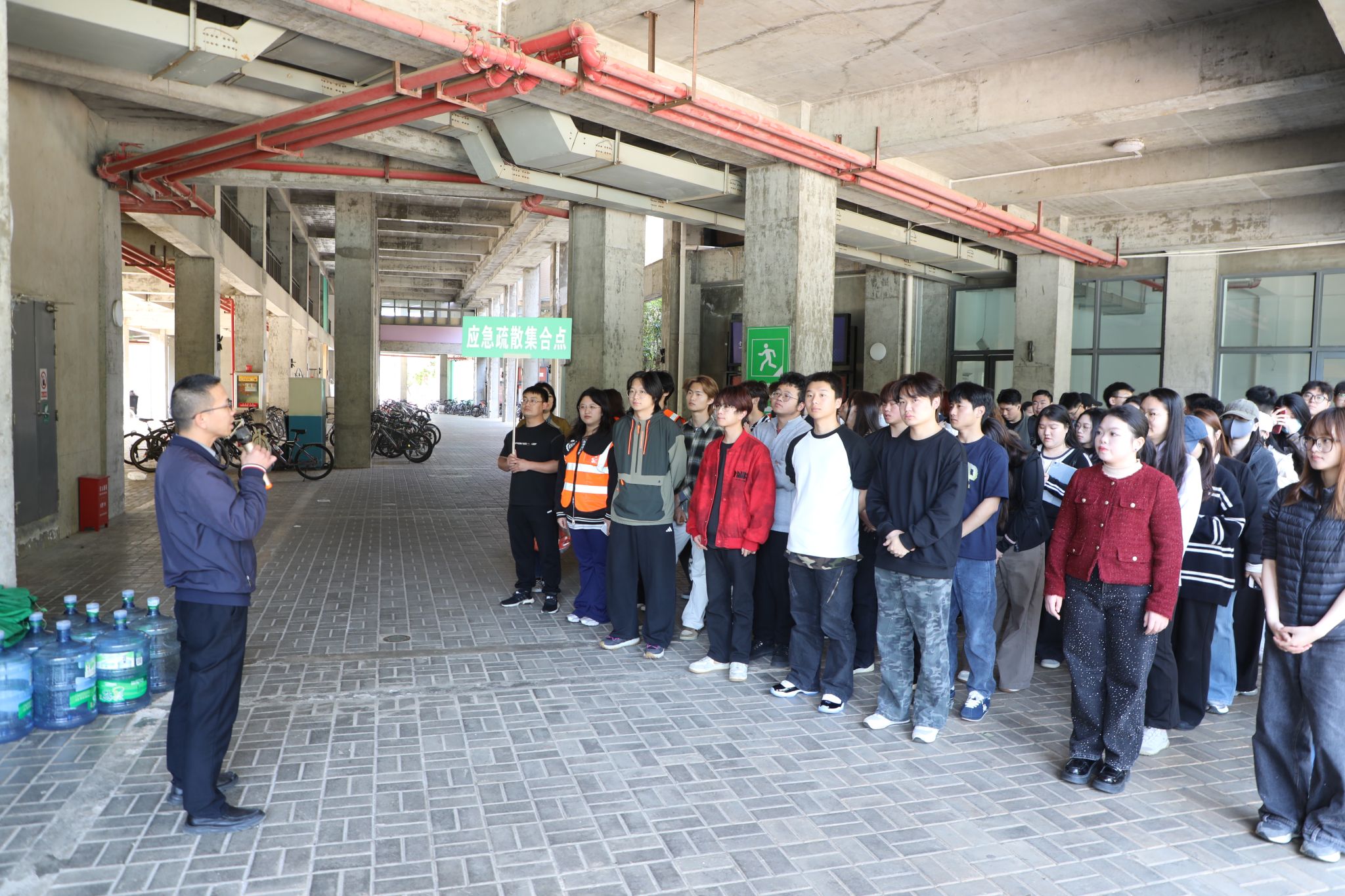 演练开始前,肖本俊围绕宿舍消防安全重要性、演练流程规范、不同场景下应急逃生要点等内容开展专题培训,进一步强化了参训人员的安全防范意识与应急处置能力。